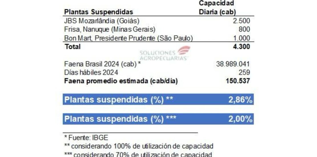 La Asociación Paraguaya de Productores y Exportadores de Carne (APPEC), tras haber evaluado con sus asesores nacionales e internacionales la real magnitud de la situación, cumple en comunicar que la suspensión de algunas plantas industriales de la región que exportan a China deberá tener nula incidencia en la afectación de los precios de exportación, teniendo en cuenta que las plantas suspendidas en el Brasil por motivos particulares, constituyen menos del 2% del total de la faena en ese país.